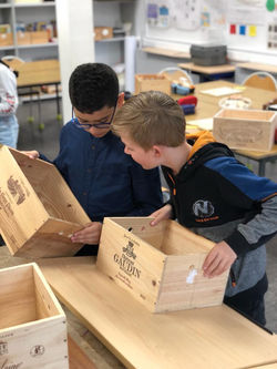 Les élèves de la classe de Madame Magali ont récupéré des caisses à vin pour les transformer en tabourets.